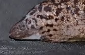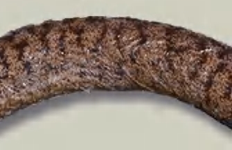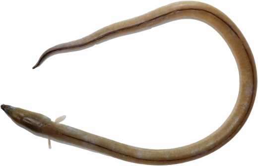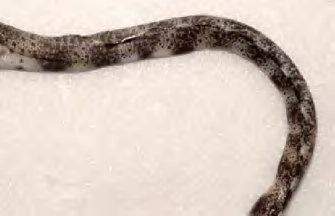 形态特征│ 体延长而呈圆柱状,尾部侧扁。吻短而钝;颌齿单列,颌间齿为2~3个可倒伏的尖牙。脊椎骨数125~128。幼鱼体暗褐色,略带红紫,成鱼体色由黄褐色至红褐色。皮肤光滑且具特色花纹,缺乏胸鳍腹鳍及鳞片。