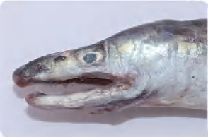 形态特征│ 体延长,躯干部近圆筒状,尾部侧扁。头大,锥状。吻尖长。体背及两侧银灰色,大型个体暗褐色,腹部乳白色。
