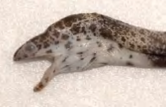 形态特征│ 体延长而呈圆柱状,尾部侧扁。吻短而钝;体光滑无鳞。体为暗褐色,体侧具不规则3列黑色圆斑。背鳍、臀鳍上各具大型圆斑1列,胸腹部无大型圆斑。