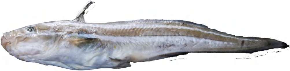 形态特征│ 鱼体延长,头部略平扁,尾尖如尾。体表无鳞,体背侧棕灰色,体侧中央有2条黄色纵带,背鳍及胸鳍的第一根为具毒腺的硬棘。