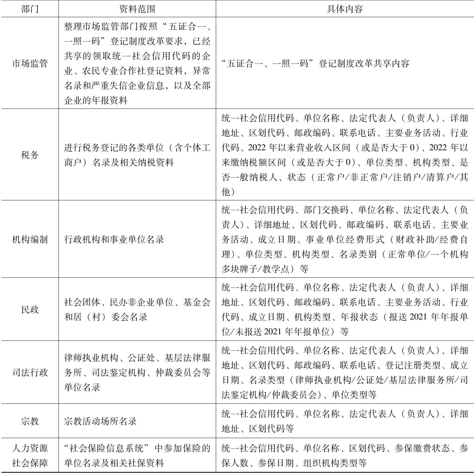 表1.30 经济普查中需协助提供资料的部分部门及资料内容