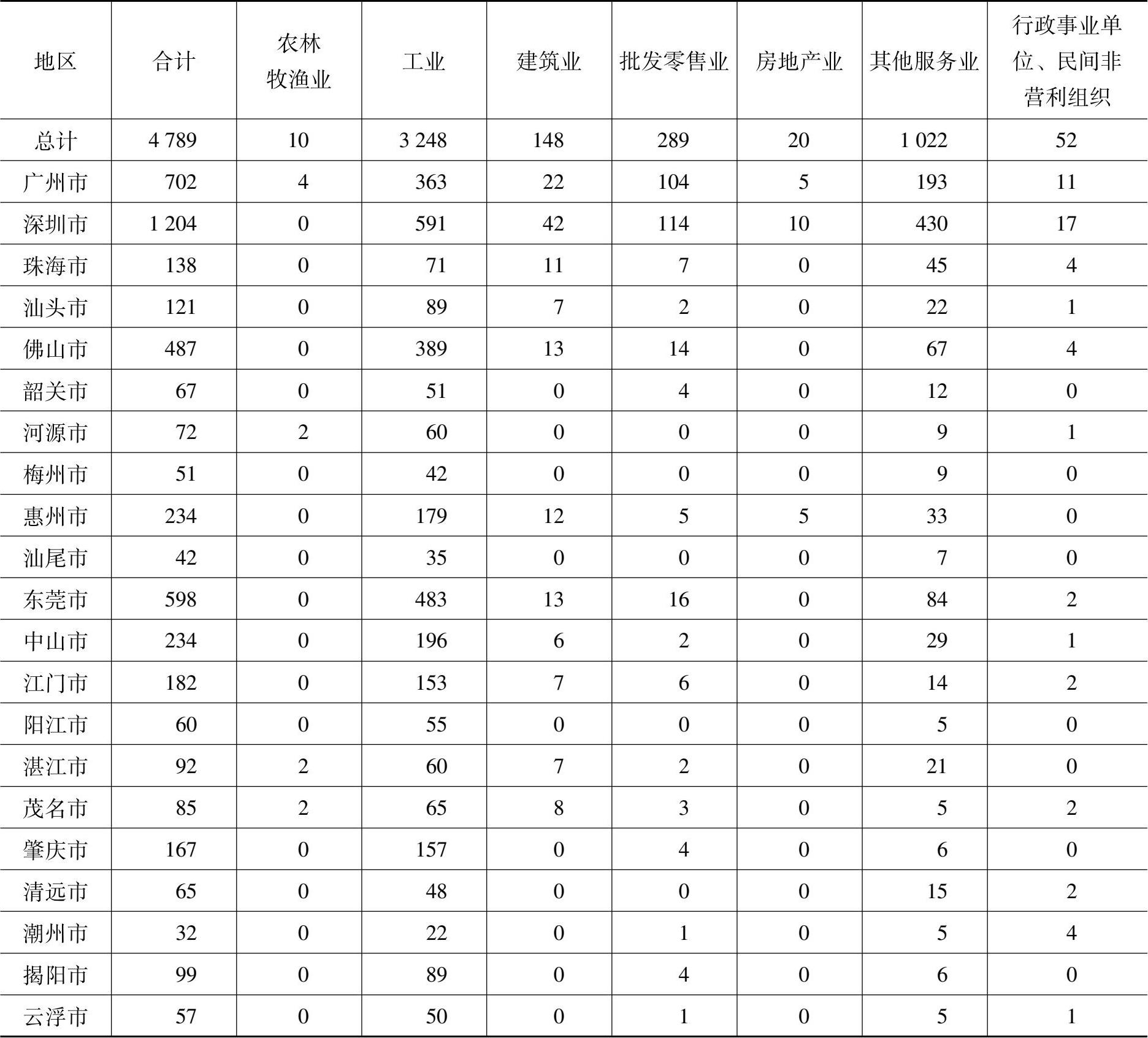 表1.25 第四次经济普查广东省按行业分组的法人单位情况