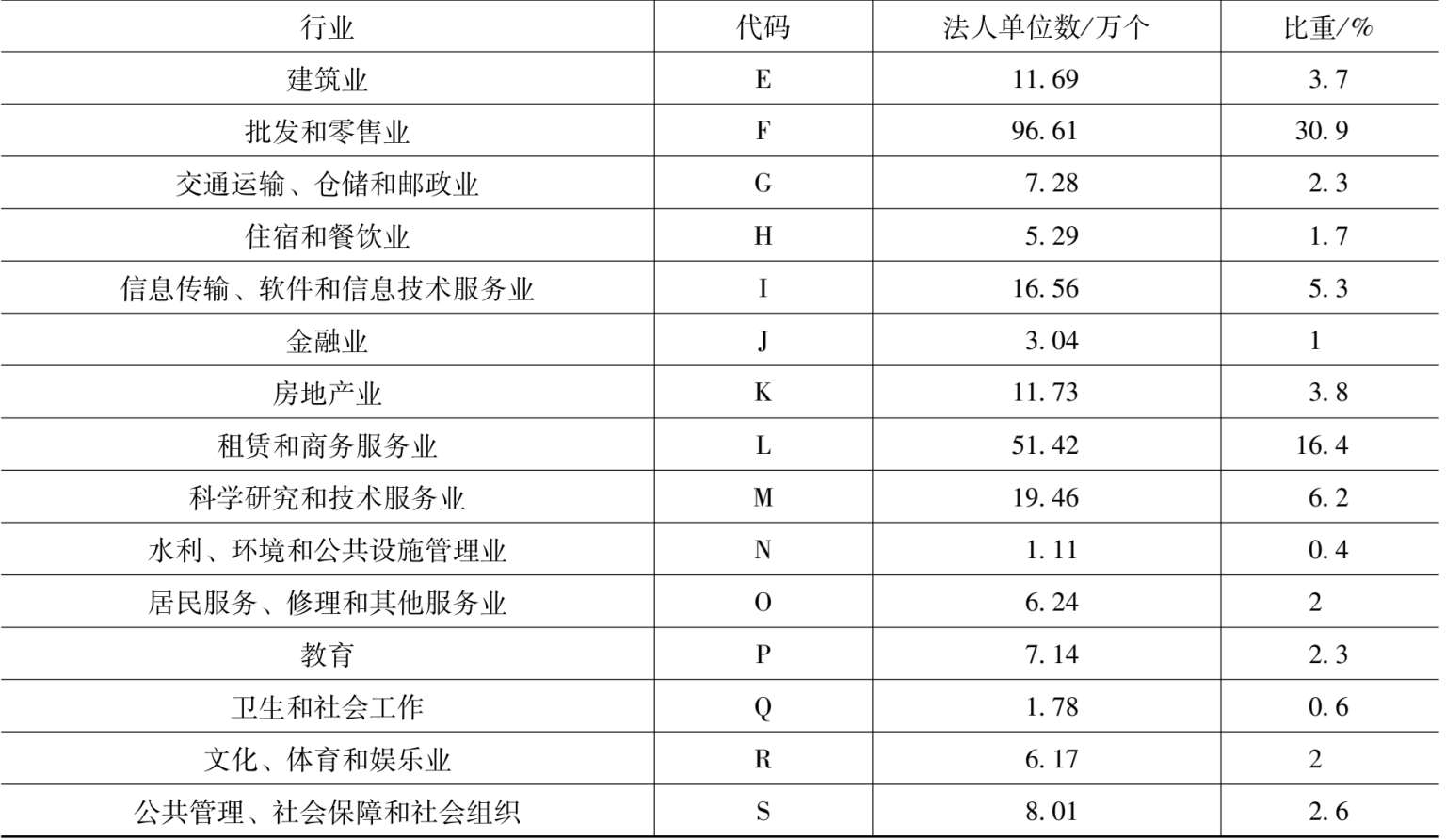 表1.29 2022年四季度按行业分组的新增和剔除法人单位情况