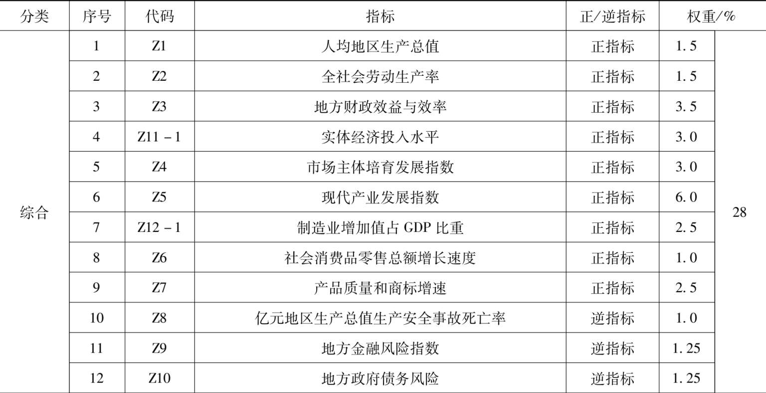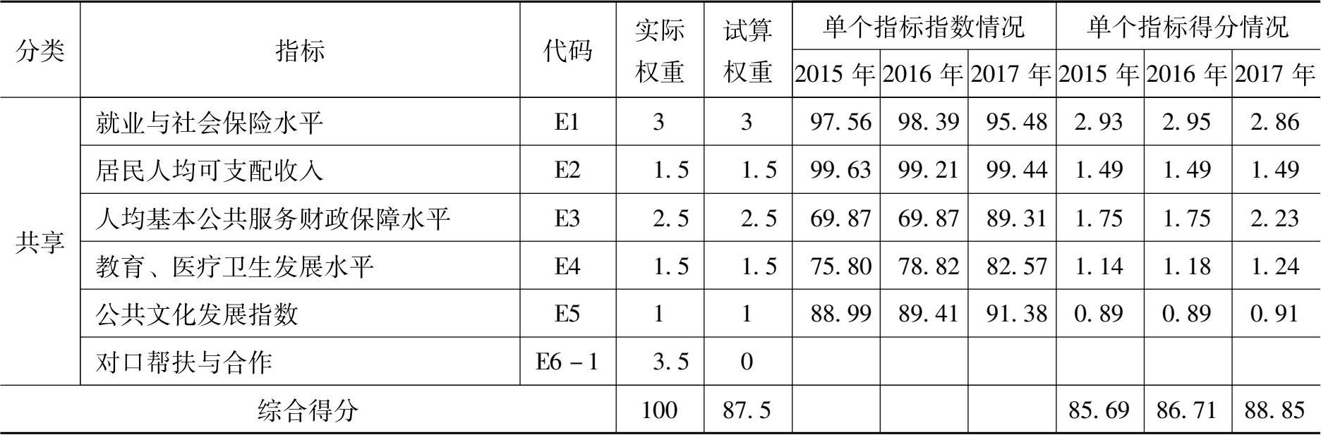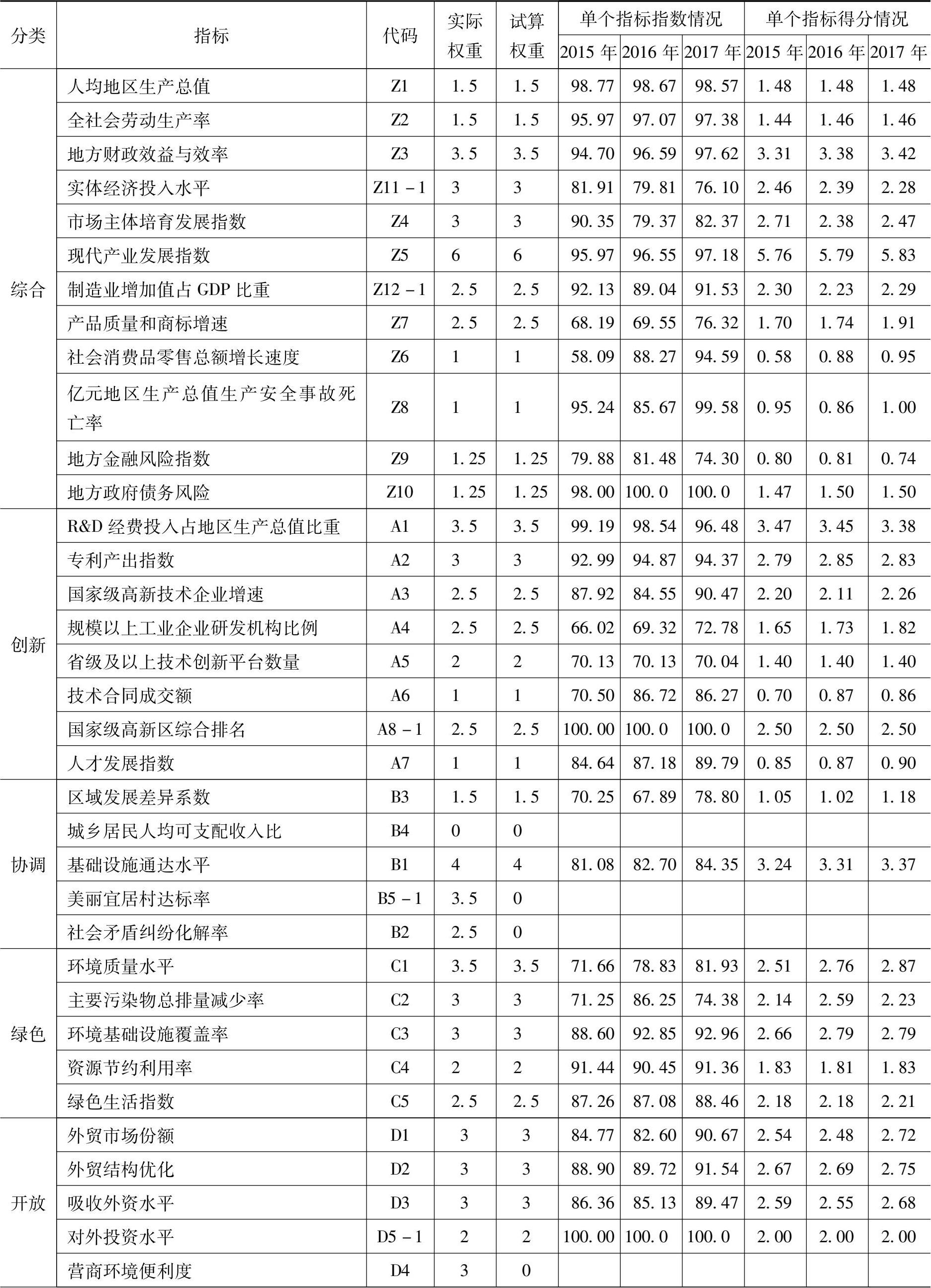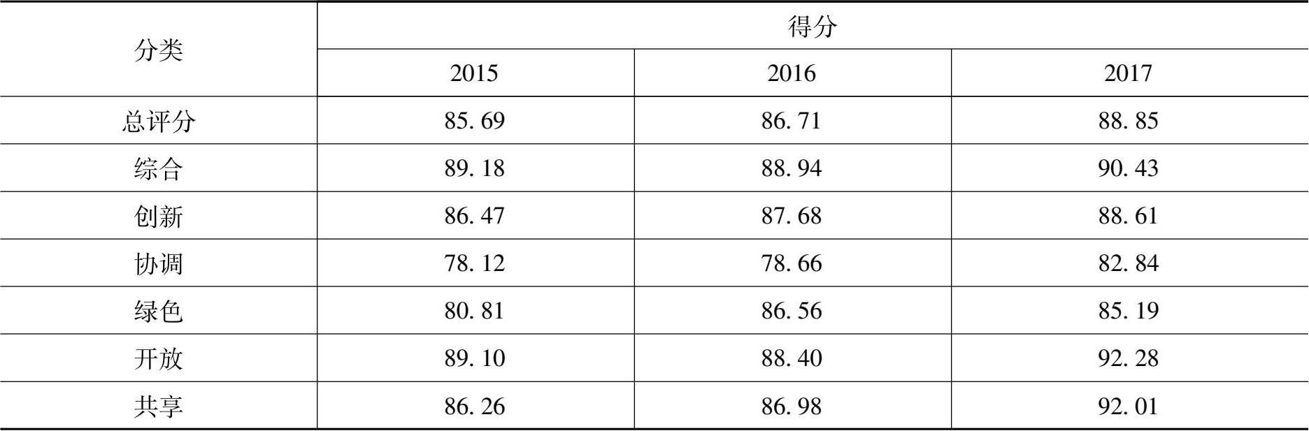 表1.8 2015—2017年深圳高质量综合绩效评价指标结果
