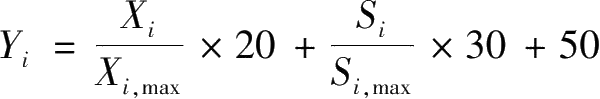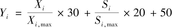 (2)水平分30分。如为正指标,直接用该指标与不分区最大值比较,计算值乘以30;如为逆指标,直接用该指标与不分区最小值比较,计算值乘以30。