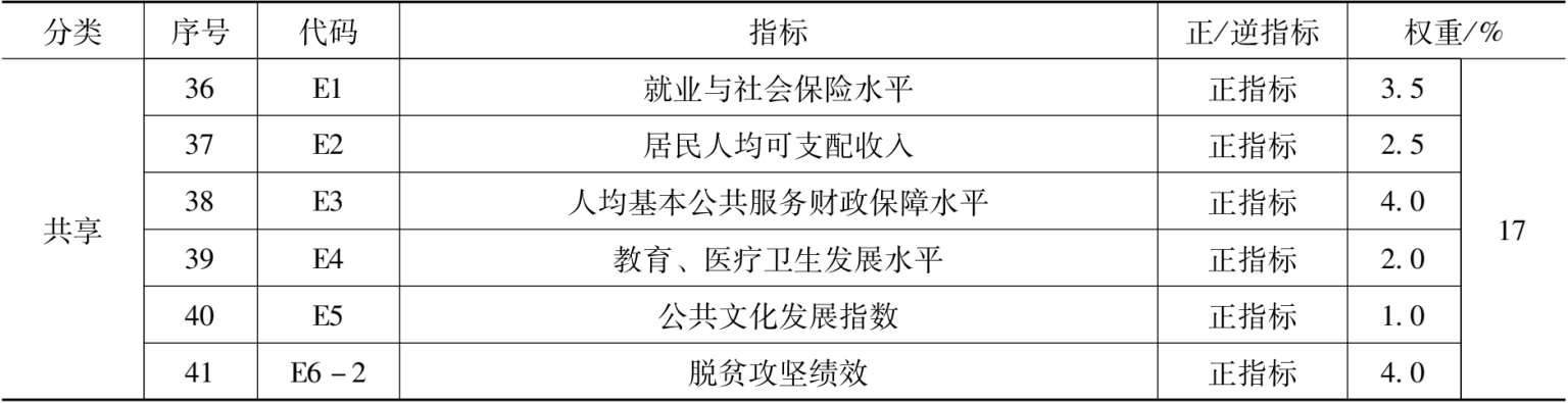 四是对应性与可比性原则。高质量发展评价体系根据3类区域分为3个指标体系,3个指标体系均有41个指标,其中适用于3类区域的共同指标有35个,适用于不同区域的类别指标有12个。为使评价结果具有可比性,二级指标权重的设置要一一对应,不可差别过大。