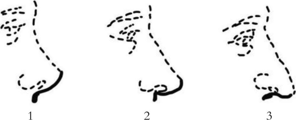 鼻基底部也可分为上翘型、水平型和下垂型(图3-10)。