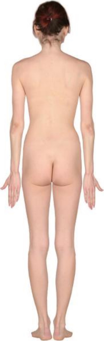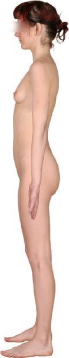 图2-2 成年女性直立前、侧、后面观