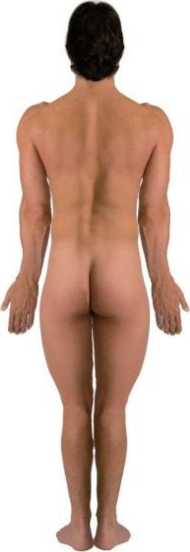 图2-1 成年男性直立前、侧、后面观