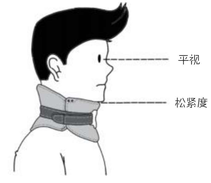 选择合适材质、型号的颈托,松紧度以佩戴时能放入2个手指为宜,高度以佩戴后眼睛能保持平视为宜。
