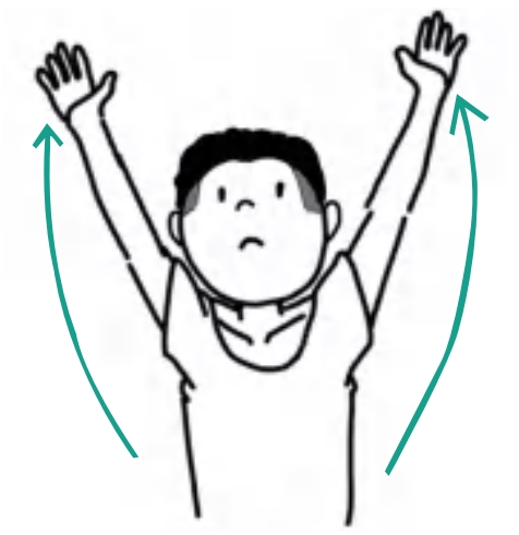 肘关节伸直,双手上举过头顶,双手手臂伸直,掌心朝上,同时脑袋往后仰,目视双手手背,保持20秒。3次为1组,每天3组。