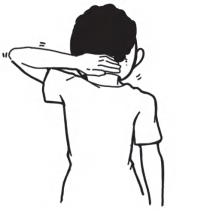 肩膀下沉,颈部缓慢地向右侧肩膀倾斜,保持5秒,然后回到中位,这个过程中头、双肩和颈部都要尽量放松,再用同样的方法向左侧肩膀倾斜。左右各1次为1组,每天早、中、晚各3组。