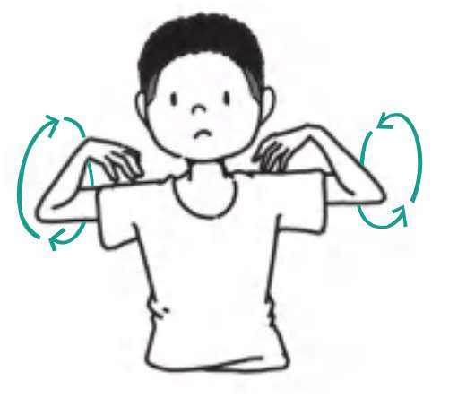 双手掌心搭在同侧肩膀上,手肘从后往前旋转,再从前往后旋转,转动时速度不宜过快,运动时尽量不要耸肩,颈部肌肉放松即可。每个方向各20次为1组,每天3组。