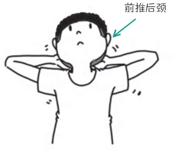 双手交叉紧贴于后颈部,然后向前推颈部,同时头颈部向后用力,相互对抗,注意双手和颈部同时出力,避免速度过快。维持姿势20秒为1组,每天3组。