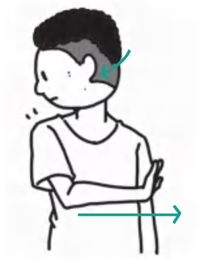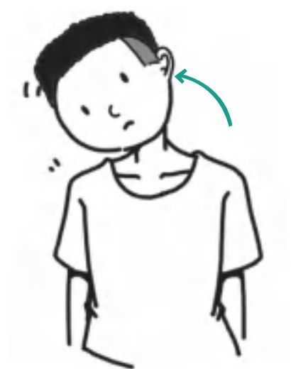 肩膀下沉,颈部缓慢地向右侧肩膀倾斜,保持5秒,然后回到中位,这个过程中头、双肩和颈部都要尽量放松,再用同样的方法向左侧肩膀倾斜。左右各1次为1组,每天早、中、晚各3组。