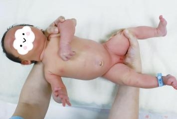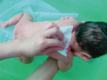 (3)将婴儿放回操作台上,并用大毛巾擦干头部。