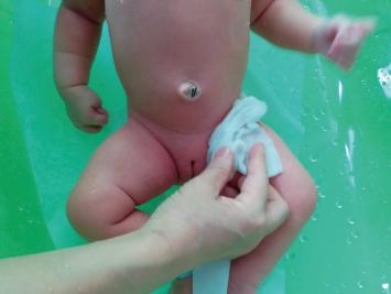 10.注意保护未脱落的脐带残端,避免脐部被水浸泡或被污水污染,可使用脐带贴保护脐部。