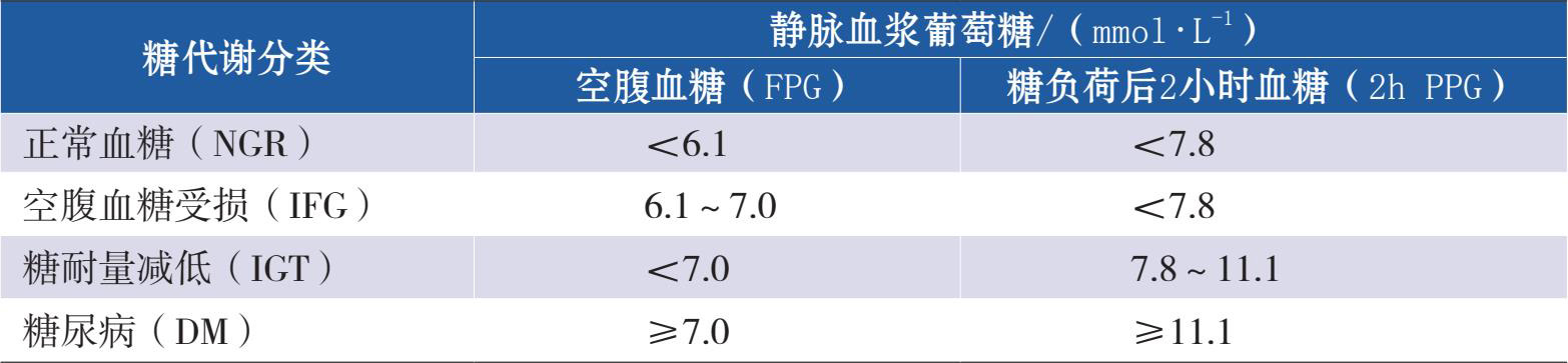 表2-1-2 糖代谢状态分类[WHO糖尿病专家委员会(1999)]