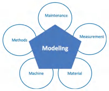 而智能制造系统有了高新信息技术的支持,能够给予制造业以往不具备的灵活性和精细度,一个重要的原因是:它让制造业获得了5大核心要素之外的第6个M,也就是建模(Modeling——数据和知识建模,包括监测、预测、优化和防范等),如图2-3所示。