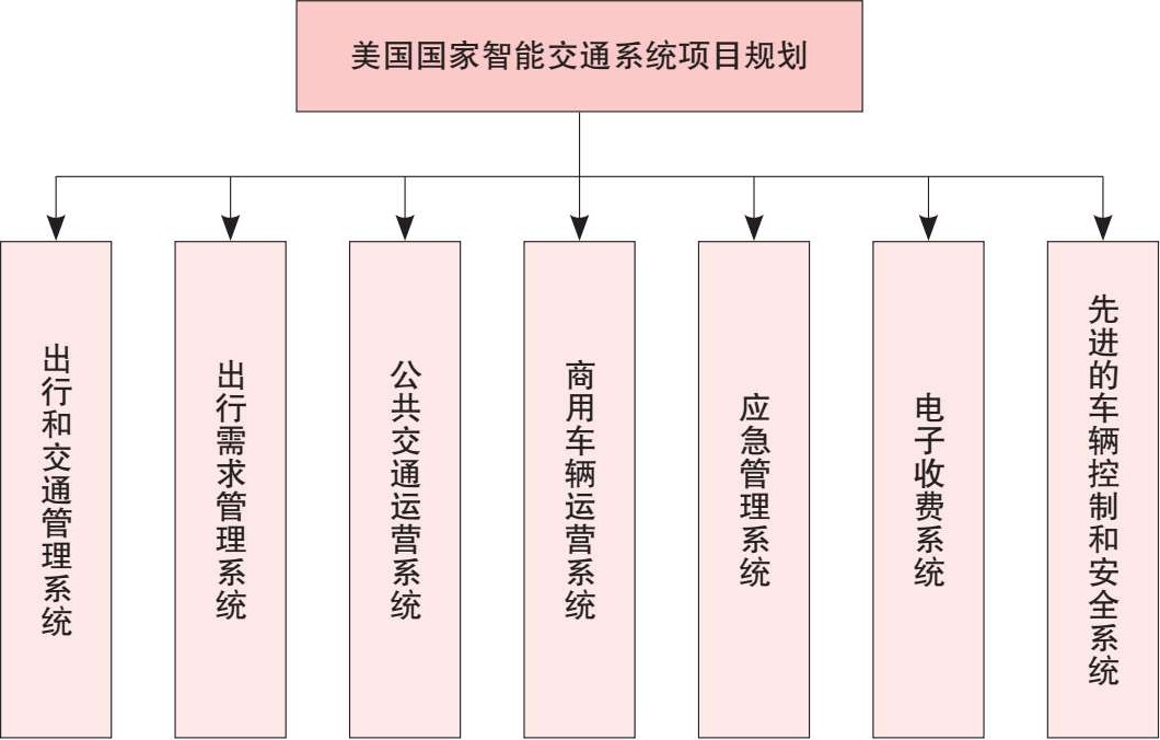 美国的交通系统智能化研究始于20世纪60年代末,当时被称为电子线路导航系统(electronic route guidance system,ERGS)。20世纪80年代中期美国在全国开展了智能化车辆-道路系统(intelligent vehicle highway system,IVHS)方面的研究,在研究过程中发现这不仅仅是车辆和道路的问题,还涉及由交通工具和交通基础设施组成的整个智能化交通系统,于是将此项目改名为智能交通系统。1991年,美国智能交通协会(intelligent transportation society of America,ITS America)创立。该协会是一个非营利组织,旨在帮助加速智能交通系统的发展,组织成员包括政府部门、私企、学术团体以及ITS国际成员等,参与的范围十分广泛,大大促进了美国智能交通系统的发展。