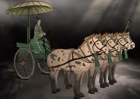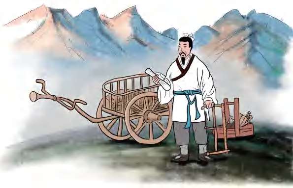 陆路运输,最原始的交通工具是人的双脚,后来人类将动物驯化为交通工具。随着生产力水平的提高,我们的祖先学会了造车。相传约在5 000年前,轩辕黄帝就会造车,据考证,黄帝造的车比较简陋,结构粗糙,而且主要是靠人力推拉的,在搬运货物时仍然非常费力。公元前2250年,奚仲造车,其所造之车是用马拉的木制车。《管子》中对奚仲造的车给予了高度评价:“奚仲之为车也,方圆曲直,皆中规矩钩绳,故机旋相得,用之牢利,成器坚固”,如图1-2所示。可见奚仲造的车是具有一定技术水平的、有重大创新的马车。到了商代,战车的使用十分普遍,当时已经能造出相当精美的双轮战车。到了春秋战国时期,车战盛行,战车数量的多少成为衡量一个国家强弱的标志,说一个国家的军事力量如何,往往是说它拥有多少乘战车,比如千乘之国、万乘之国。