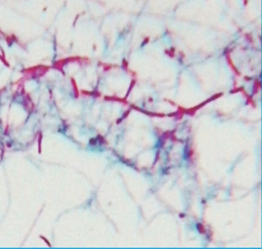 形态学观察可以简便区别两类不同的菌种 ×1000