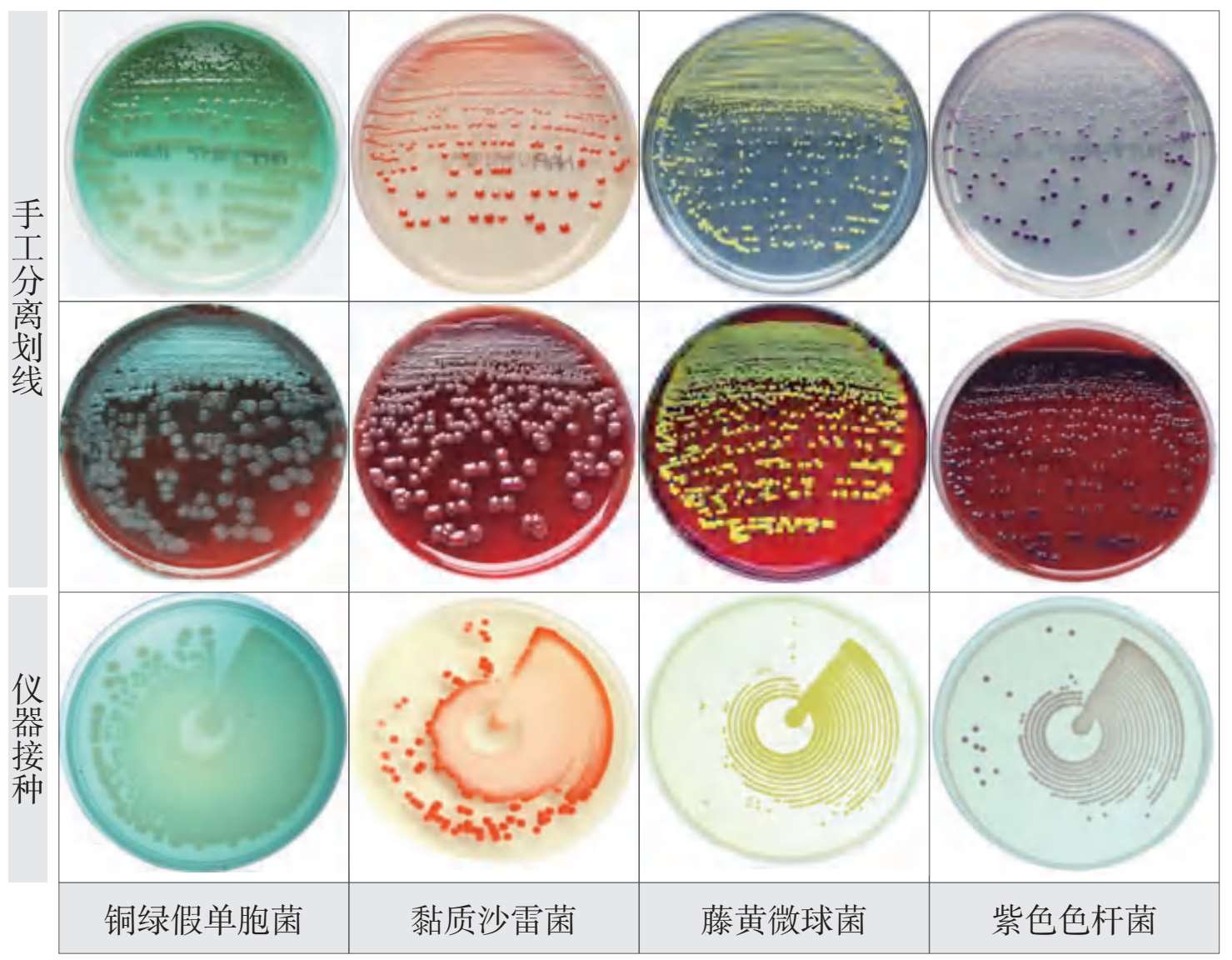 细菌手工分离划线与全自动微生物接种仪接种菌落图