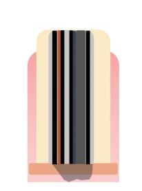 E.甲母痣模式图:常表现为均一黑色或深褐色纵行条带。