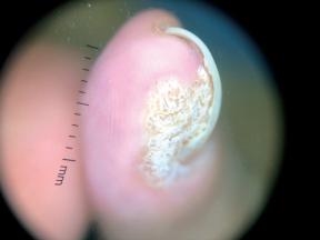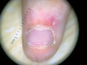 图2-4-5 甲下乳头状瘤皮肤镜下表现