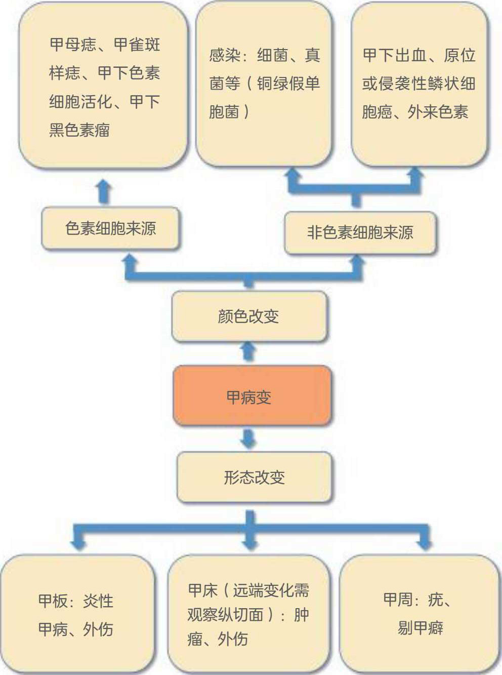 图2-4-1 甲皮肤镜下改变的诊断思路