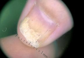D.甲远端皮肤镜下可清楚见到甲破裂处角化团块。