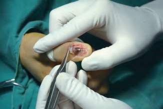 在切取病灶以后,尽量将掀起的甲板回植,促进创面修复。具体的手术方法可见“甲外科”章节。