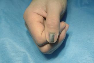 I.甲银屑病、甲扁平苔藓等炎症性疾病,活检则常采用侧面纵行切除的方法。其优点是可以同时获得甲母质、甲床、甲板、甲周皮肤的样本。另外,切除缝合后可形成新的甲沟,对外形影响较小。
