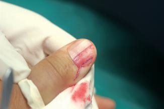 在切取病灶以后,尽量将掀起的甲板回植,促进创面修复。具体的手术方法可见“甲外科”章节。