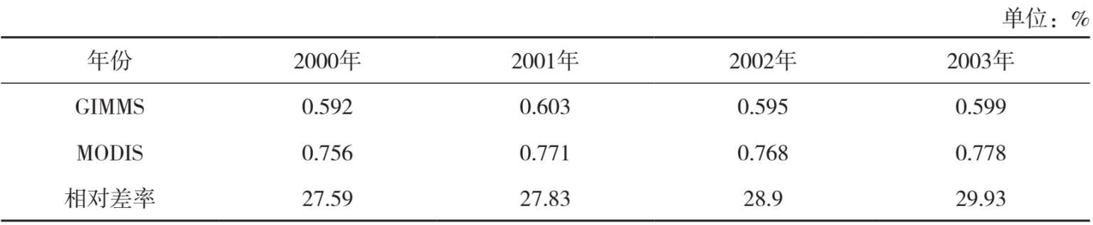 其中,CNDVI G 为矫正后的GIMMS的AMNDVI值,NDVI G 为矫正前的值。