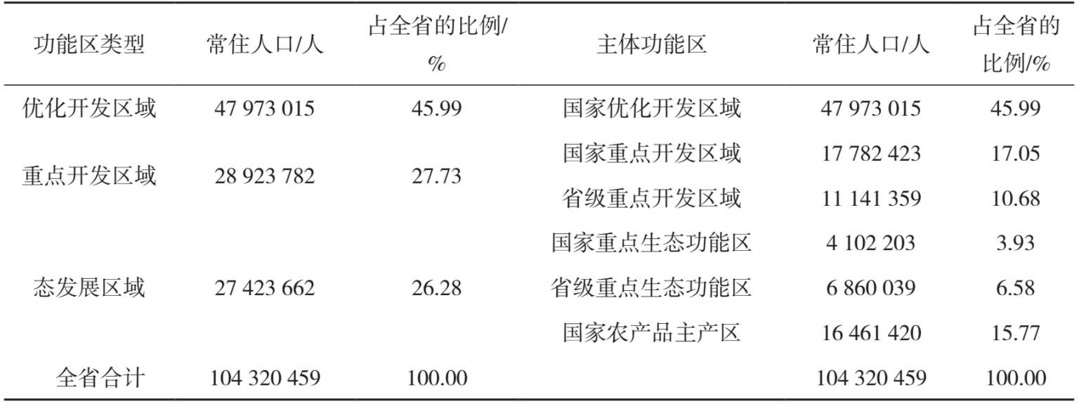 表2-10 广东省农产品主产区各功能单元的人口分布