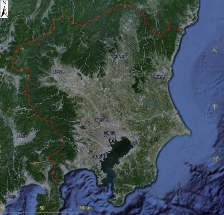 关东盆地位于日本本州中南部,其北部与西部为山地,东边太平洋沿岸有一些丘陵,从山地发育形成的利根川和荒川等河流水系,往东、南流向太平洋和东京湾。长期的水流冲刷携带大量泥沙流向东京湾,在山地和东京湾之间形成了广袤的关东平原。整个关东盆地在行政上被划分为1都6县,分别是东京都、神奈川县、埼玉县、千叶县、茨城县、群马县和栃木县,统称为关东地区,总面积32 424.5 km 2 (图2-5)。