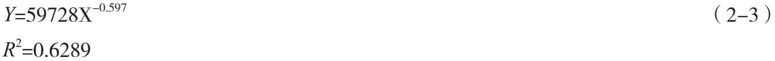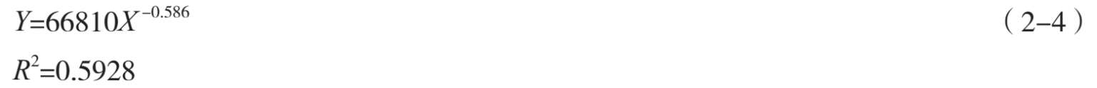 最后根据上一节拟合幂指数函数得到以下最大人口密度和适宜人居区域面积关系的极限方程(图2-10):