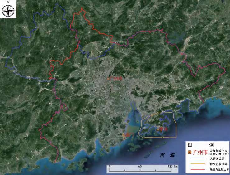 图2-14 珠江三角洲盆地范围的遥感影像示意