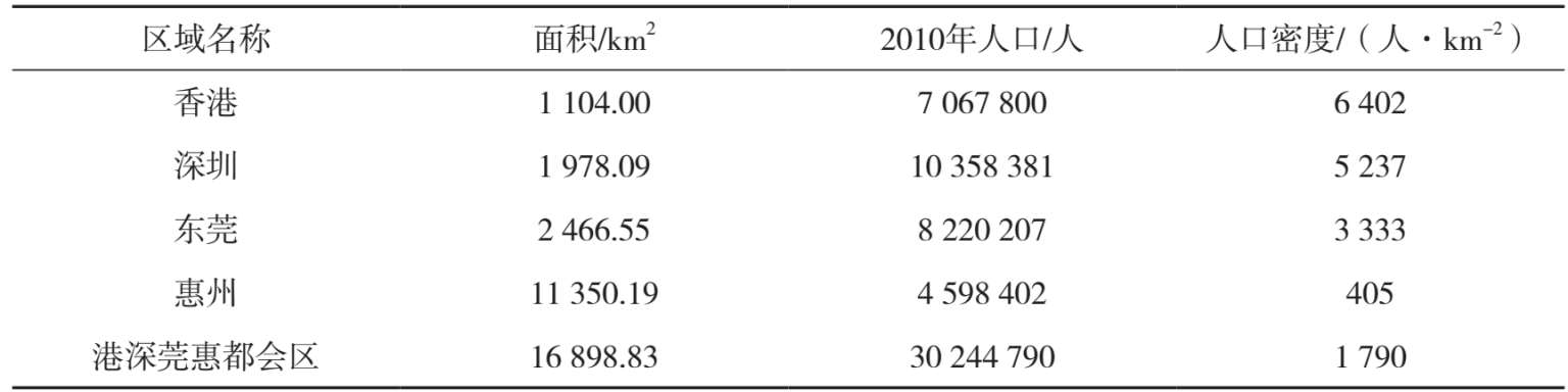 表2-14 港深莞惠都会区的人口密度