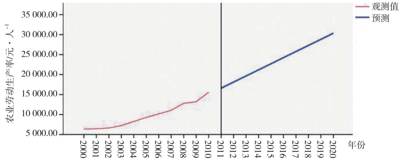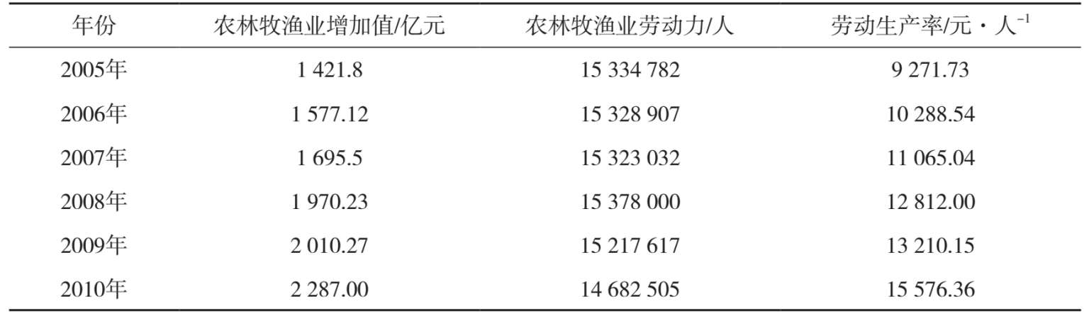 在2000—2010年统计数据(表2 -26)基础上,根据广东省农业劳动生产率变化趋势(图2—15)预测,到2020年广东省农业劳动生产率约为30 361.03元/人,是2010年的2倍多,年均增长率为7.73%。由此推算广东22个农产品主产区2020年需要农业劳动力人口合计为531.6763万人。
