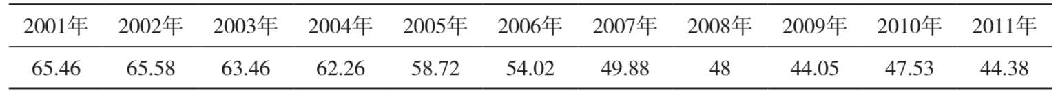 表2-27 广东省2001—2011年乡村人口抚养比/%