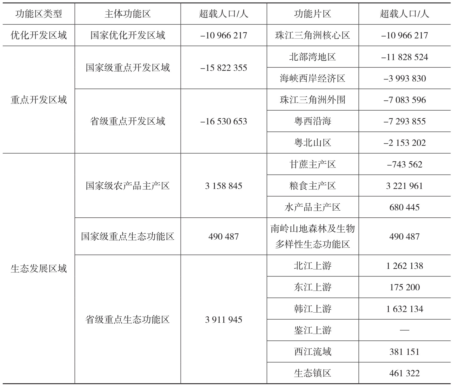 表2-33 广东各类主体功能区域2010年人口超载情况