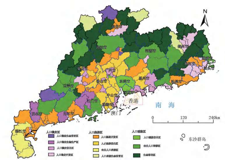 根据前述的研究结果,将广东主体功能分区各功能单元区域人口发展功能定位明确如表2-34和图2-16所示。