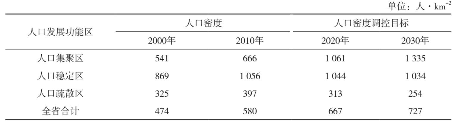 表2-40 三类人口发展功能区人口密度及其调控目标