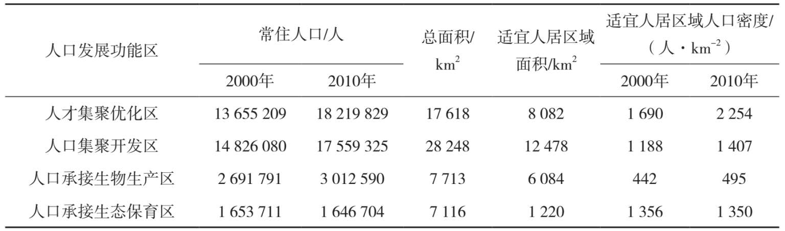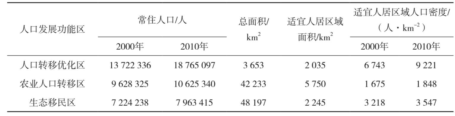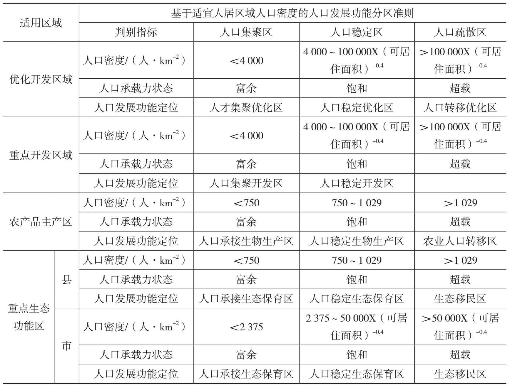 注:生态发展区城市化地区可居住区域的人口密度饱和状态的下限取城市与农村可居住区域人口密度下限的平均值。农村可居住区域人口密度饱和状态的下限取750人·km -2
