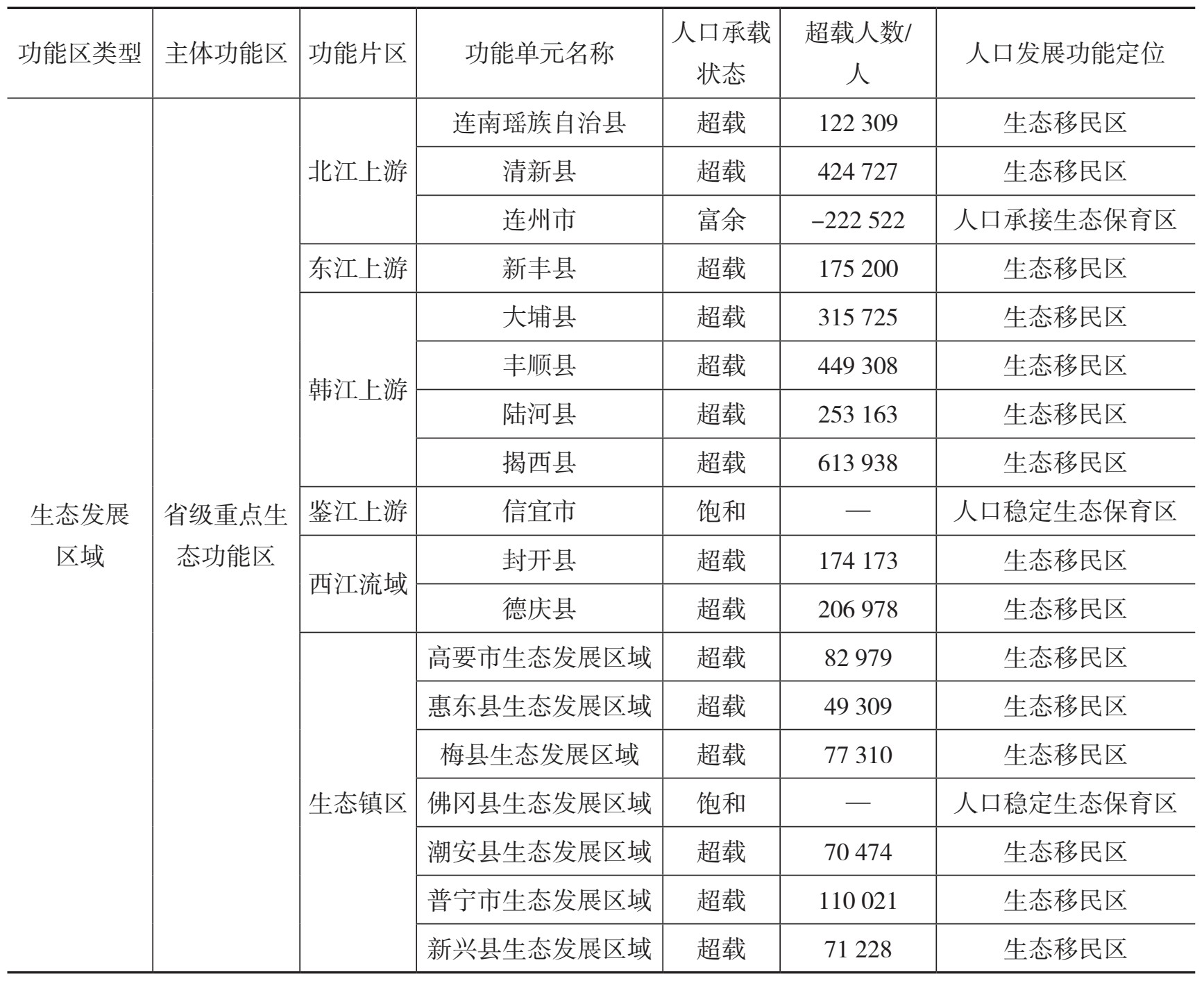 表2-33 广东各类主体功能区域2010年人口超载情况