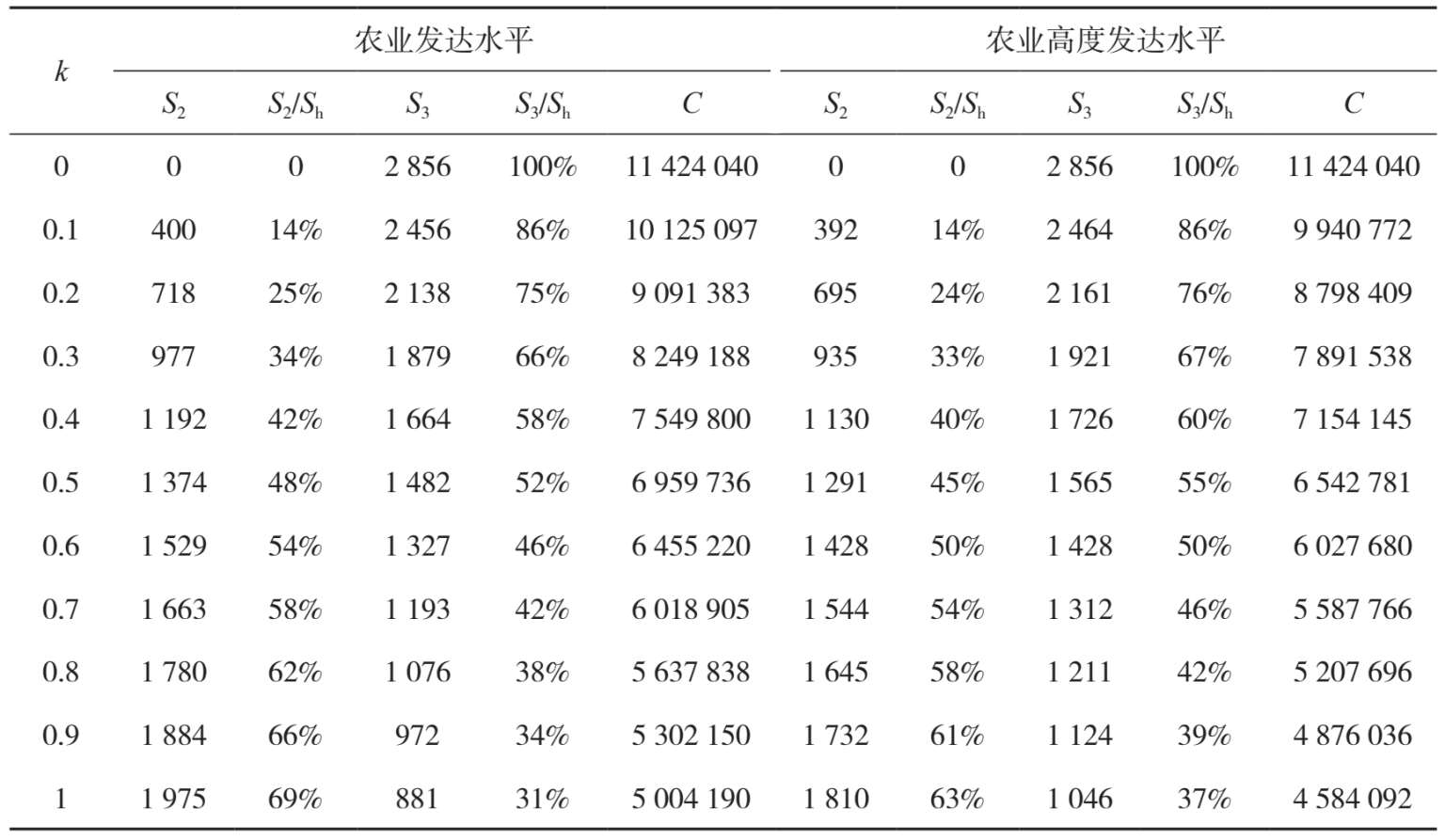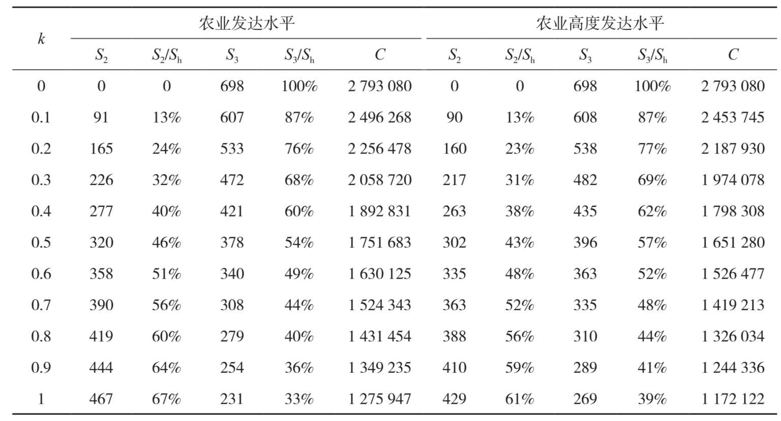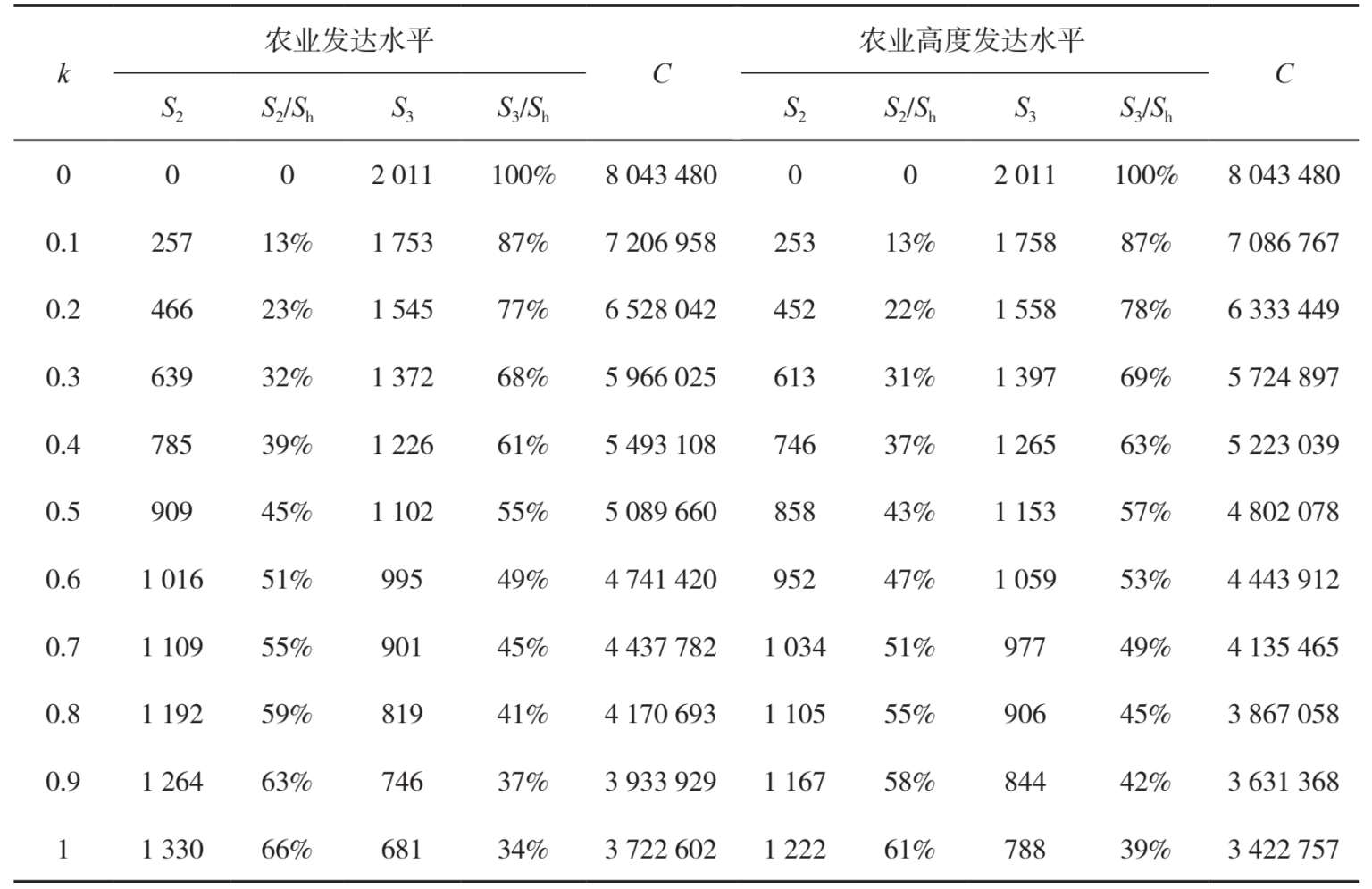 从表3-5可以看出,在农业发达水平下,佛山市若要粮食自给自足,则生物生产功能区的面积占宜居区面积的比例应该不少于69%,此时的适宜人口容量为4 539 237人;在农业高度发达水平下,佛山市若要粮食自给自足,则生物生产功能区的面积占宜居区面积的比例应该不少于63%,此时的适宜人口容量为4 158 171人。
