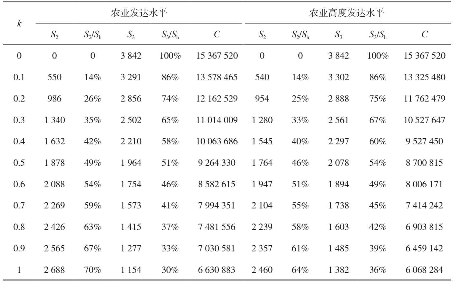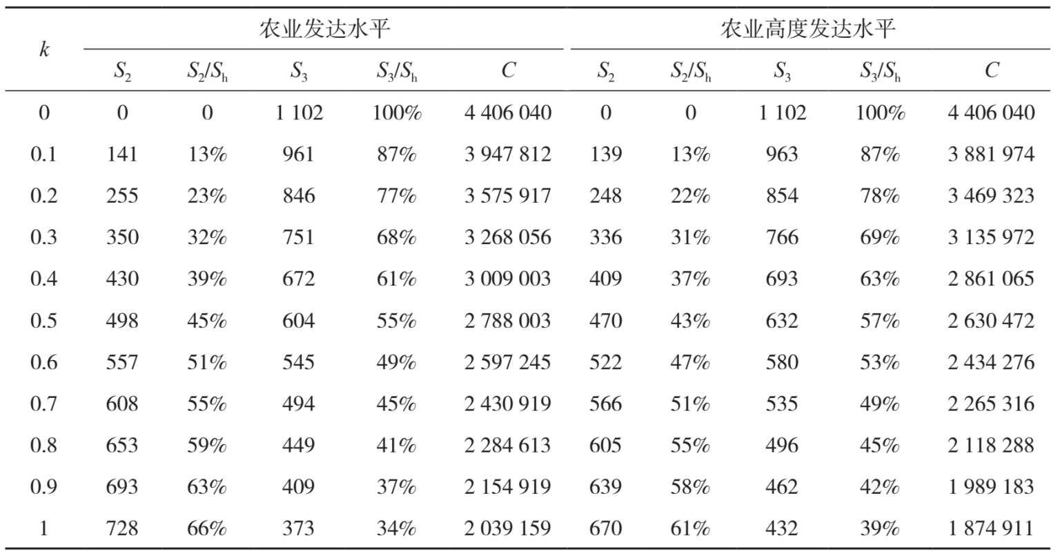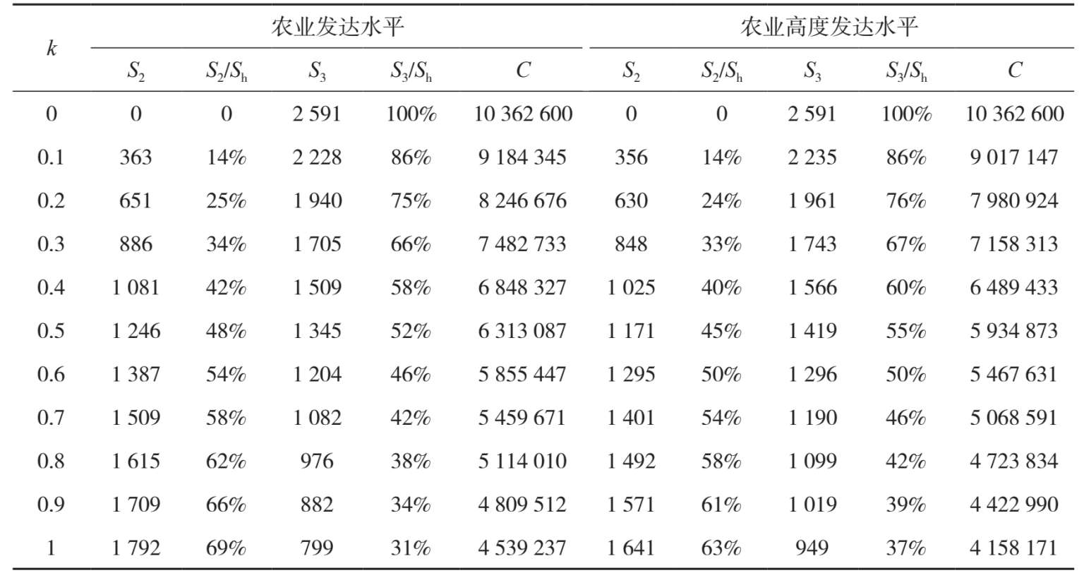从表3-5可以看出,在农业发达水平下,佛山市若要粮食自给自足,则生物生产功能区的面积占宜居区面积的比例应该不少于69%,此时的适宜人口容量为4 539 237人;在农业高度发达水平下,佛山市若要粮食自给自足,则生物生产功能区的面积占宜居区面积的比例应该不少于63%,此时的适宜人口容量为4 158 171人。