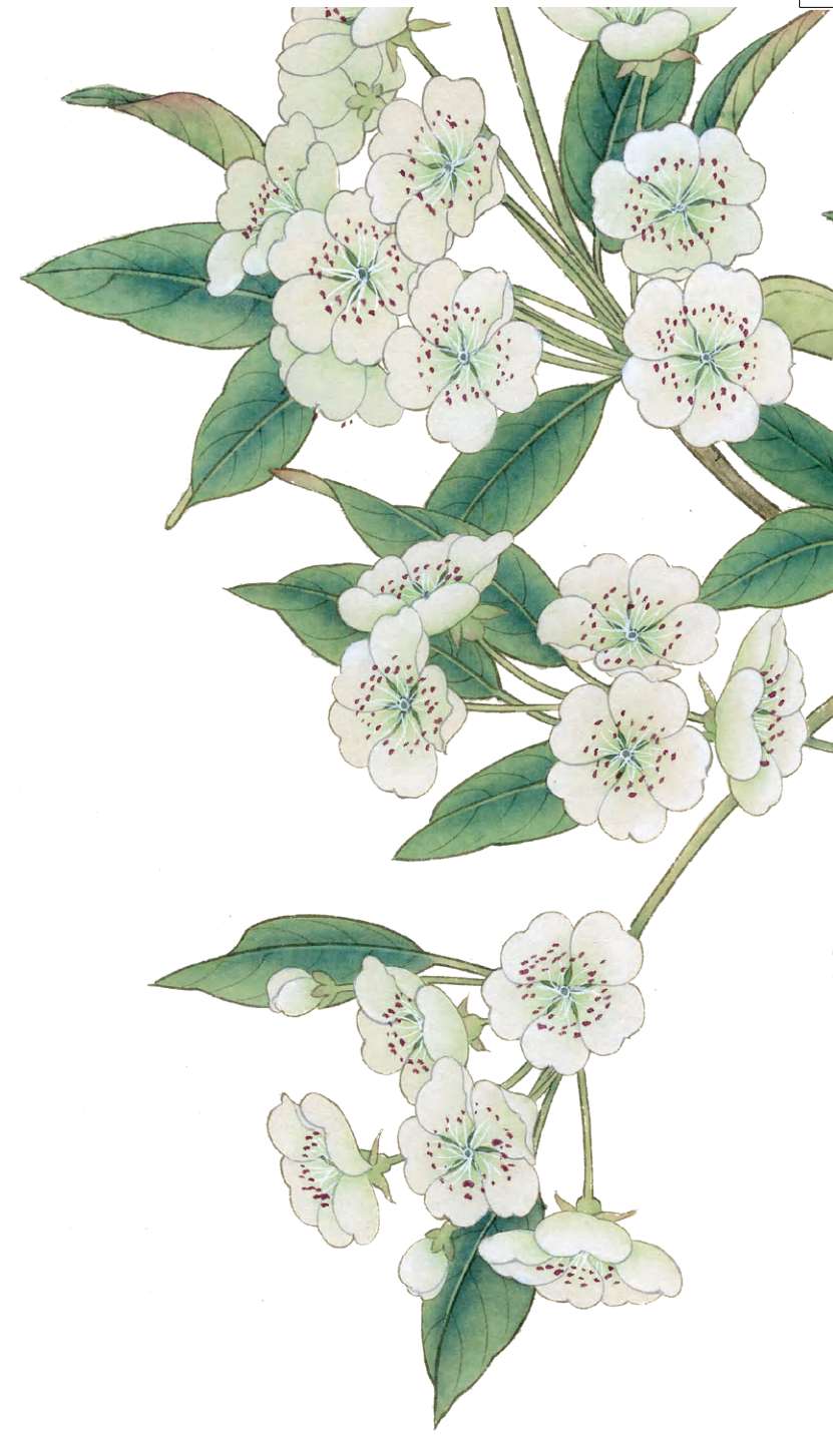 形 态 春季开花,花色洁白,如同雪花,具有淡淡的香味。花先于叶开放或同时开放,伞形总状花序;萼片5片,反折或开展;花瓣5片,具爪,白色稀粉红色;雄蕊15~30枚,花药通常深红色或紫色;花柱2~5枚,离生,子房2~5室,每室有2枚胚珠。